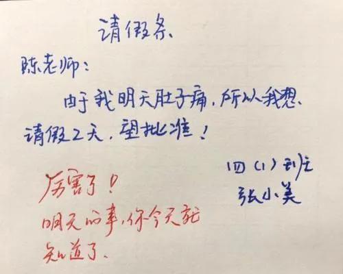 这位小学生写的假条,乍一看格式是正确的,字迹也比较整齐美观。但是仔细一看让人哭笑不得,原来这位小学生请假的原