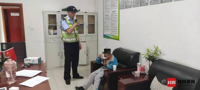 小孩在民警办公室吃方便面