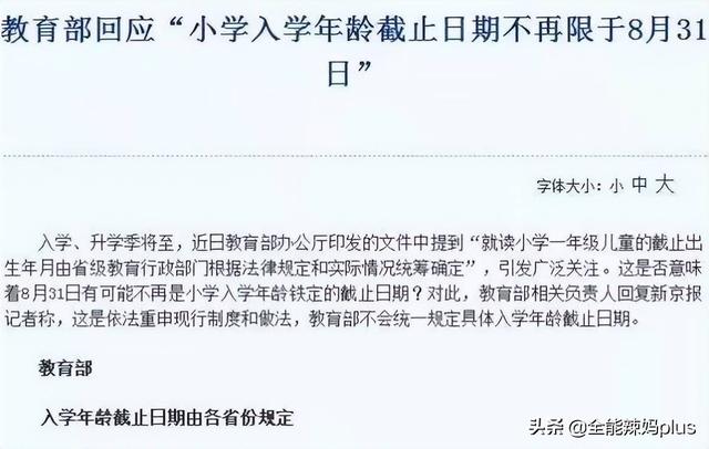 教育部对此做出了回应,部分地区可以结合孩子的情况“弹性入学”,小学入学年龄不局限于9月1日,而是当年的12月31日。