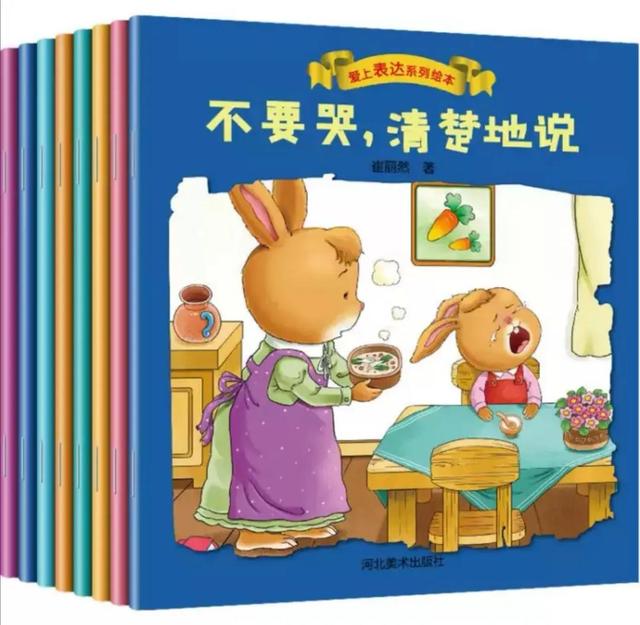 针对贝贝奶奶遇到的具体情况,我把家里的“爱上表达”系列八册绘本借给了她,提议:“想让贝贝有话慢慢说,不要急躁,心平气和地说,这几本书能帮到他。”
